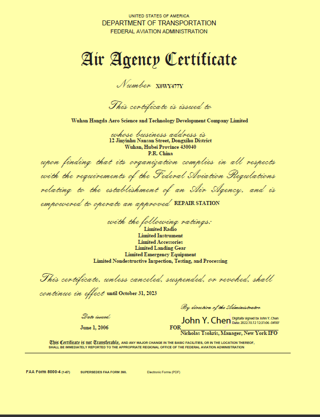 我們擁有CAAC、FAA、EASA以及多國和地區的維修資格證書